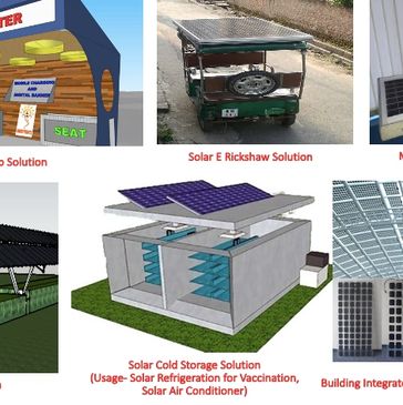 Solar Bus Stop, Solar Tea Shade, Solar E Rickshaw, Micro Solar Dome, Solar Cold Storage, BIPV, Solar Refrigerator, Solar Air Conditioner
